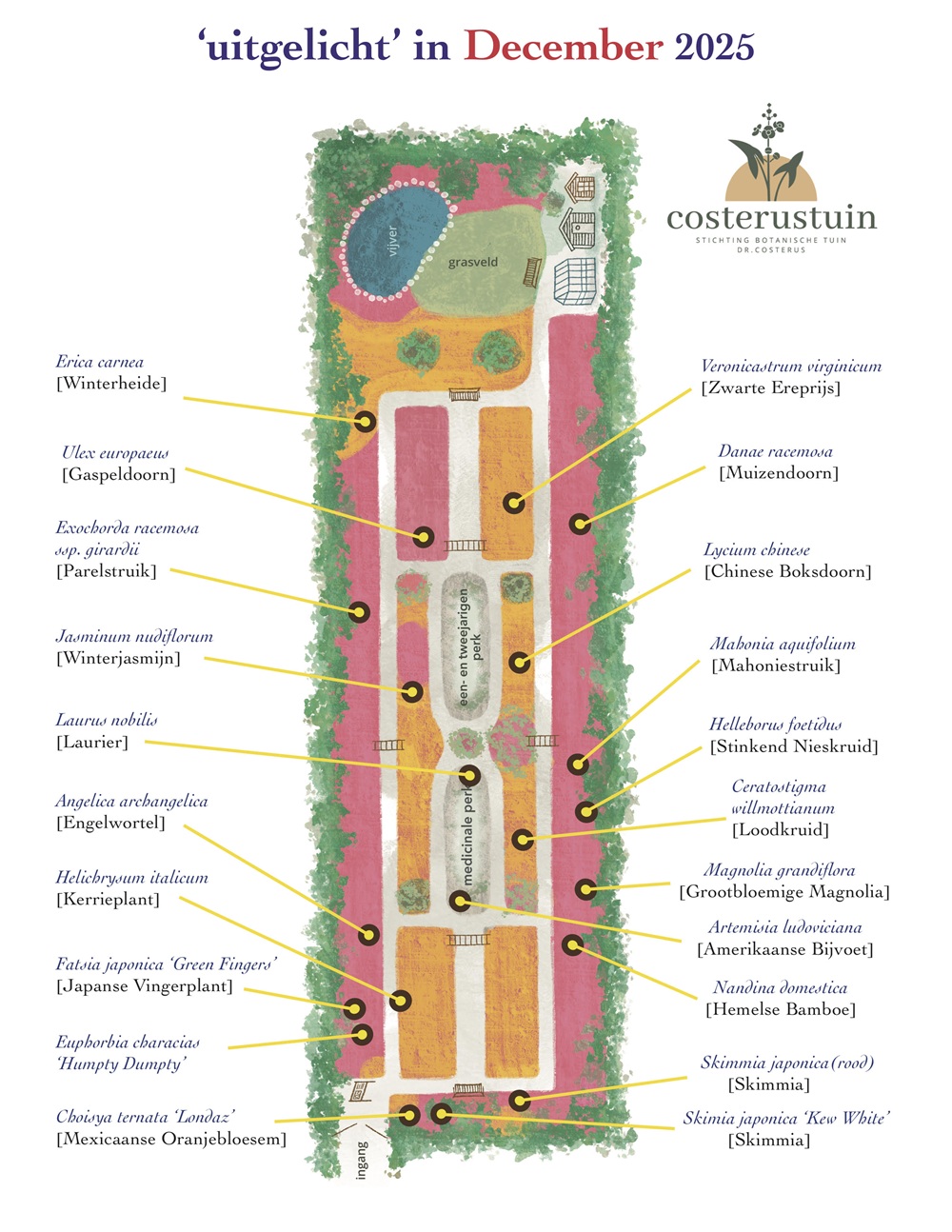 DoorMark van SchaickVoor de maand januari 2023 zette Costerustuin-vrijwilliger Renata de interessantste planten in de Costerustuin “op de kaart”. Als download te printen of om online te gebruiken.