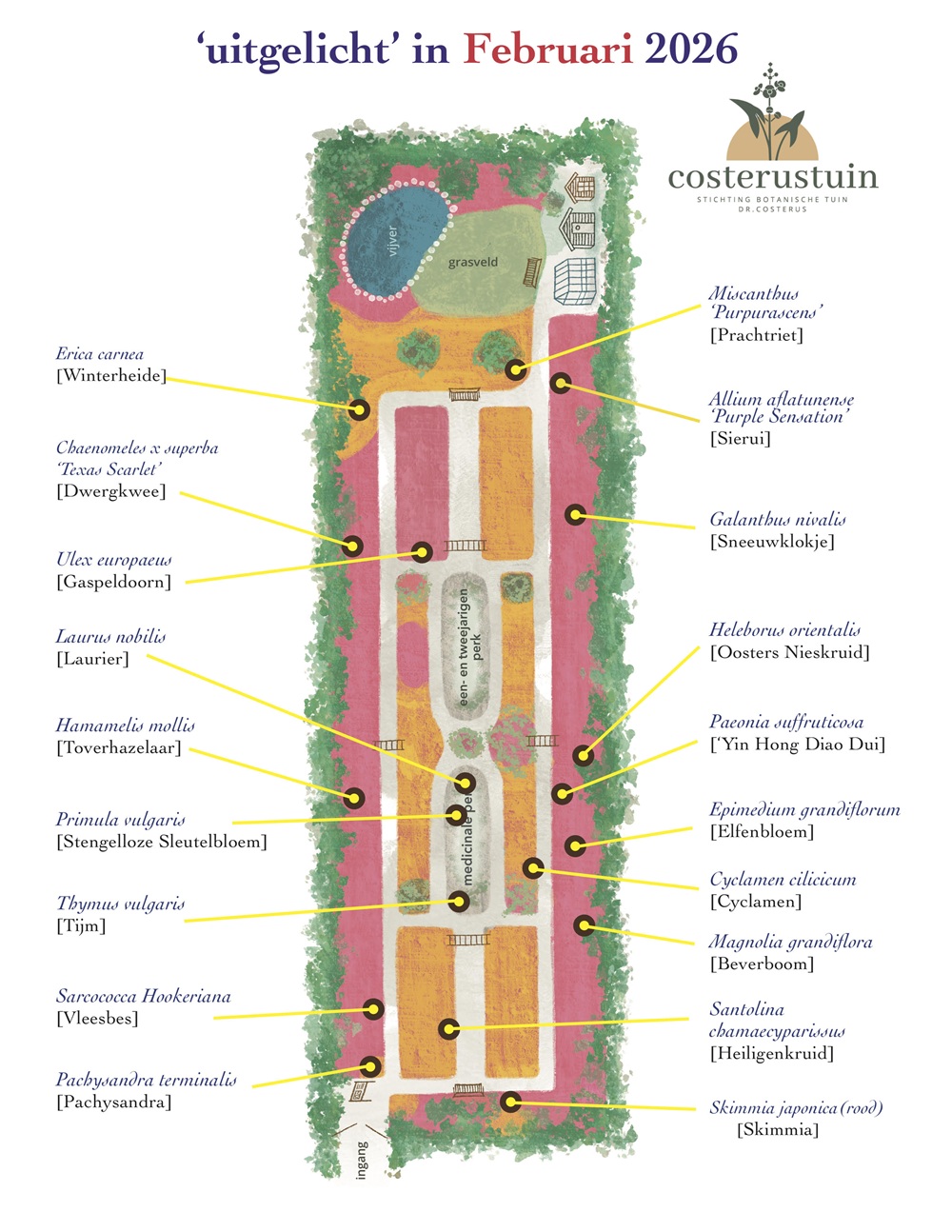 DoorMark van SchaickVoor de maand januari 2023 zette Costerustuin-vrijwilliger Renata de interessantste planten in de Costerustuin “op de kaart”. Als download te printen of om online te gebruiken.